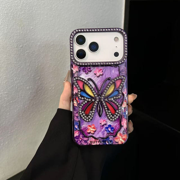 Shine bright with butterflies 🦋✨ This glamorous 3D rhinestone case features a jeweled butterfly centerpiece, floral details, and shimmering crystal borders for the ultimate bling effect. Perfect for making a statement while keeping your iPhone safe.