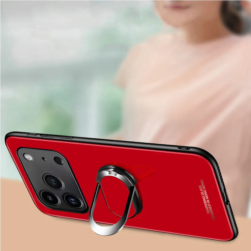 Magnet Ring Holder Tempered Glass Case for Iphone 17 16 15