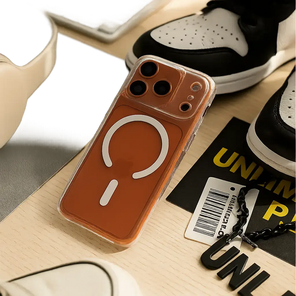 Meet the case that turns everyday carry into a statement. Terra Blaze Mag Shell wraps your phone in a warm, copper-orange finish inspired by sun-baked earth and molten metal. The crystal-clear shell shows off your device, while the bold Terra ring highlights MagSafe and adds visual punch.