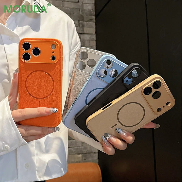 Matte Solid Color Leather Magnetic Case For iPhone 17 / 16 / 15 / 14