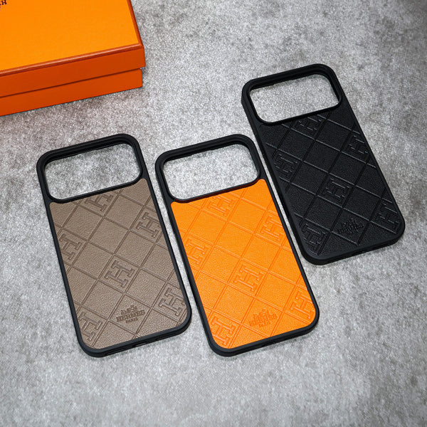 Stamped Leather H Phone Case For iPhone 17 / 16 / 15 / 14