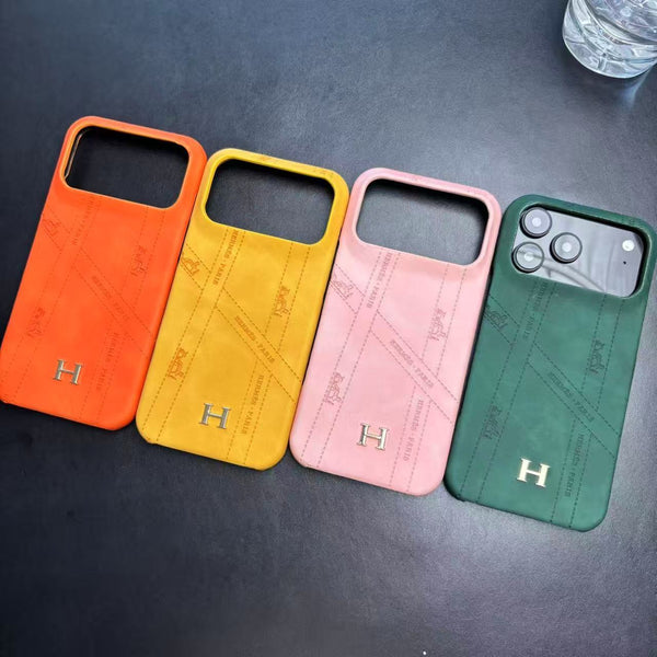 Hermes Luxury Leather Case For iPhone 17 / 16 / 15 / 14