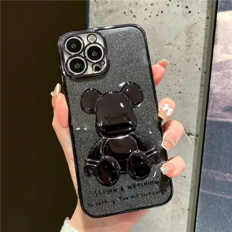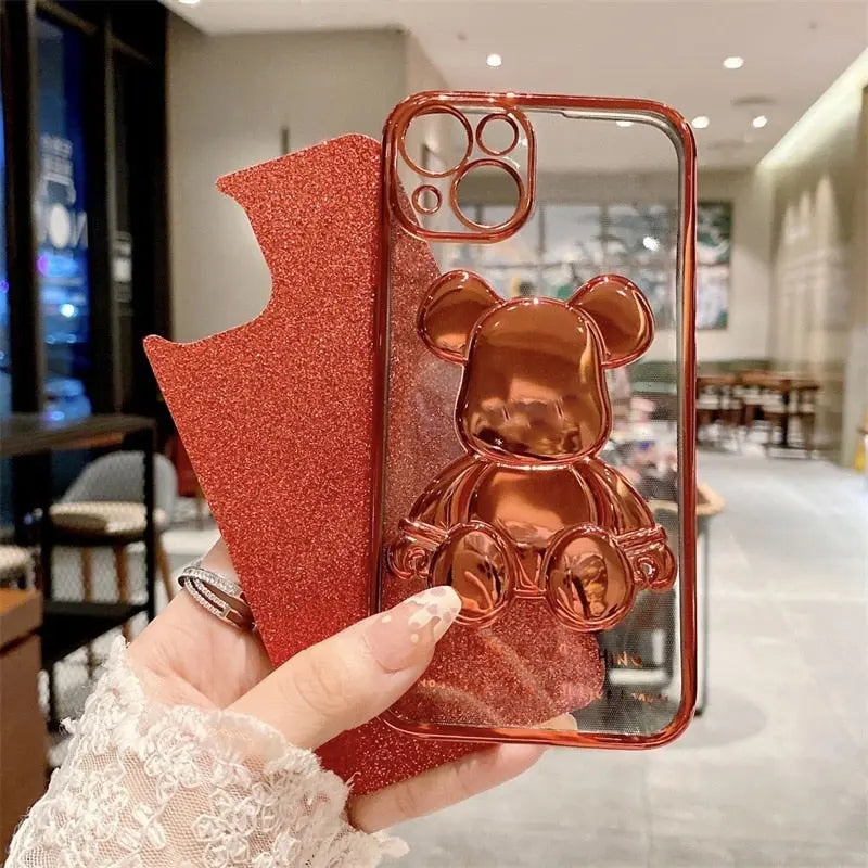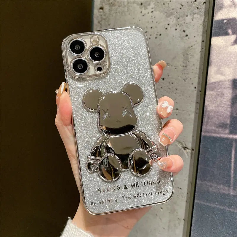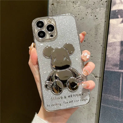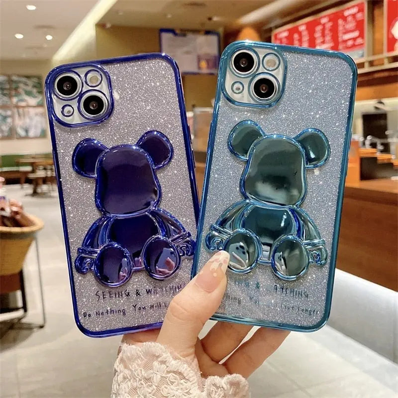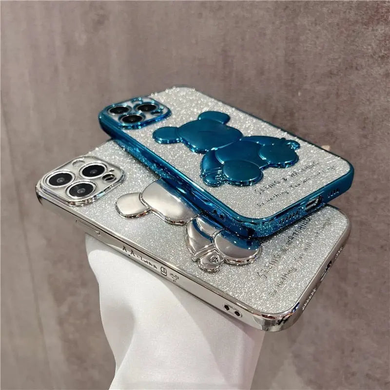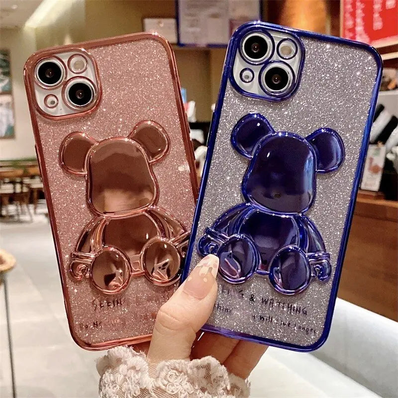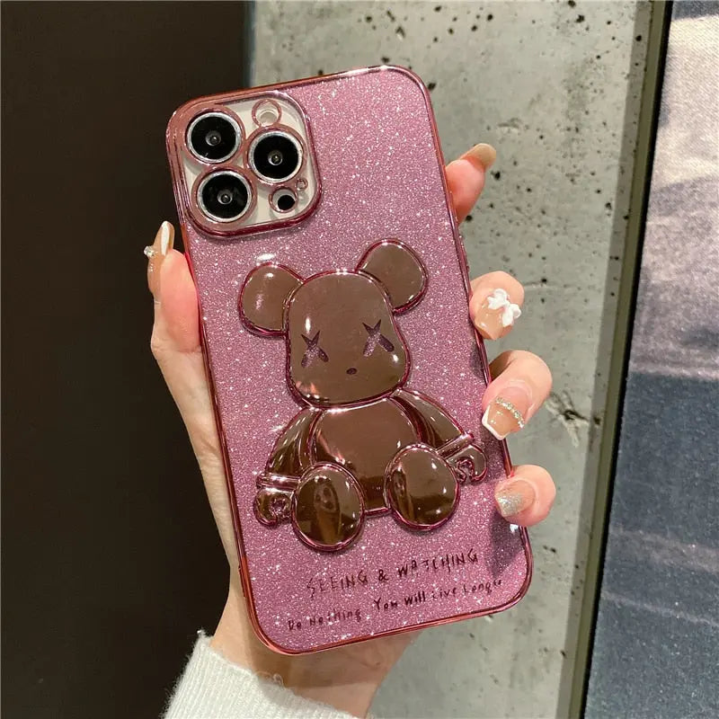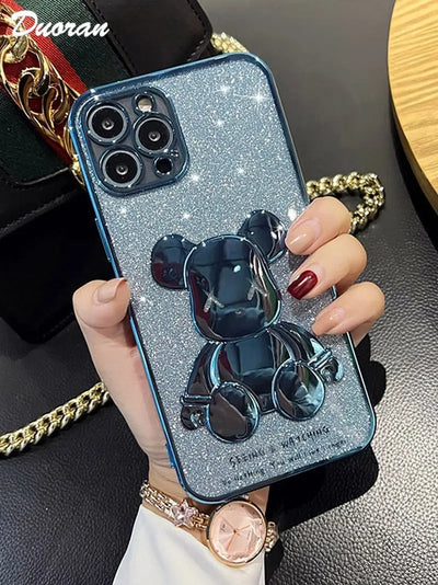 Plating Glitter Bear Phone Case For iPhone 14 13 12
