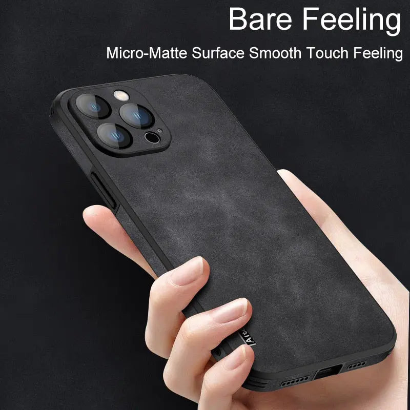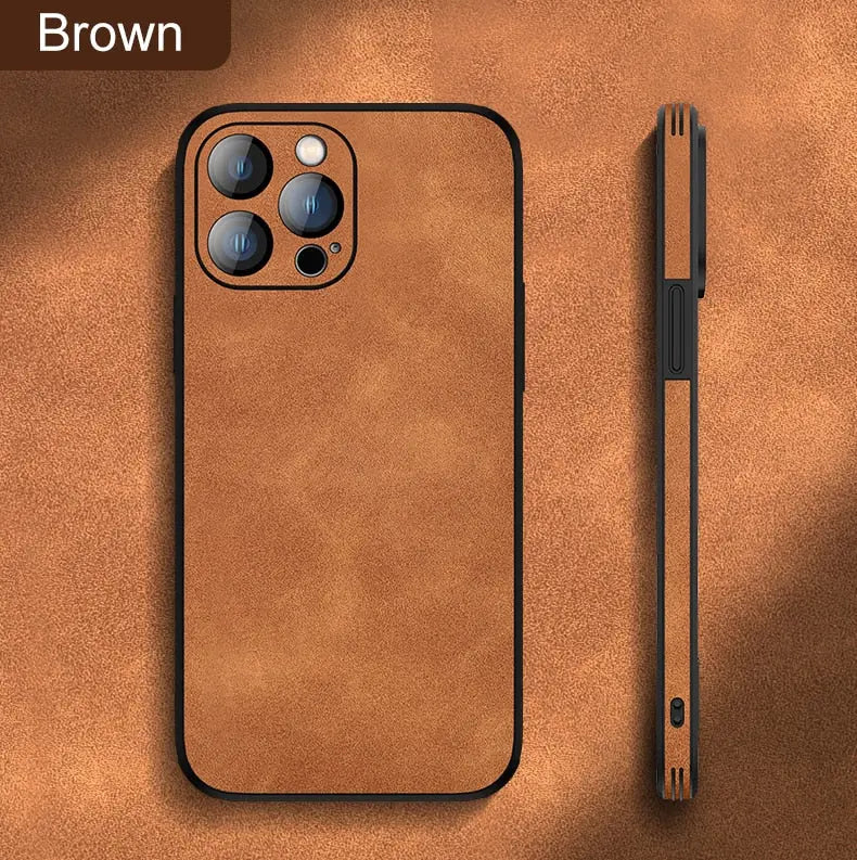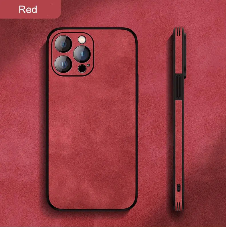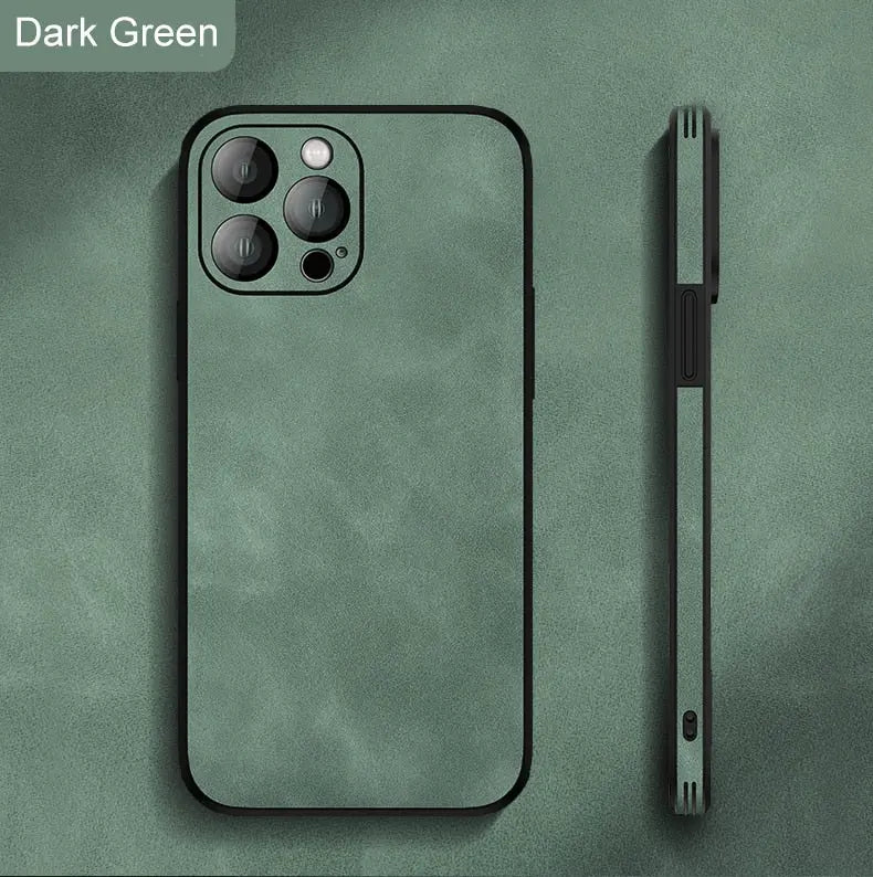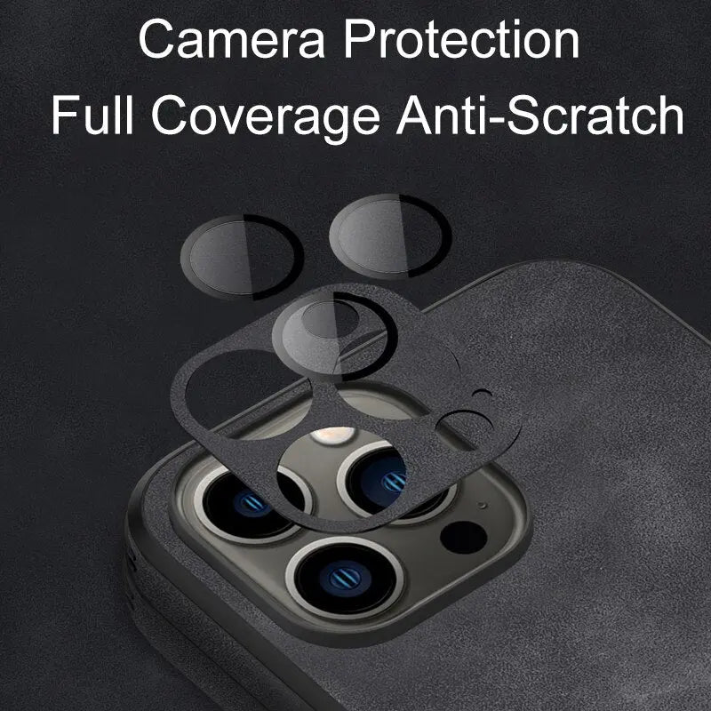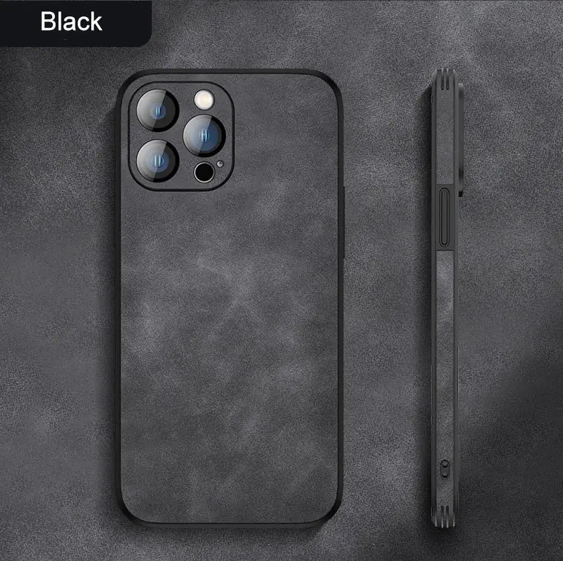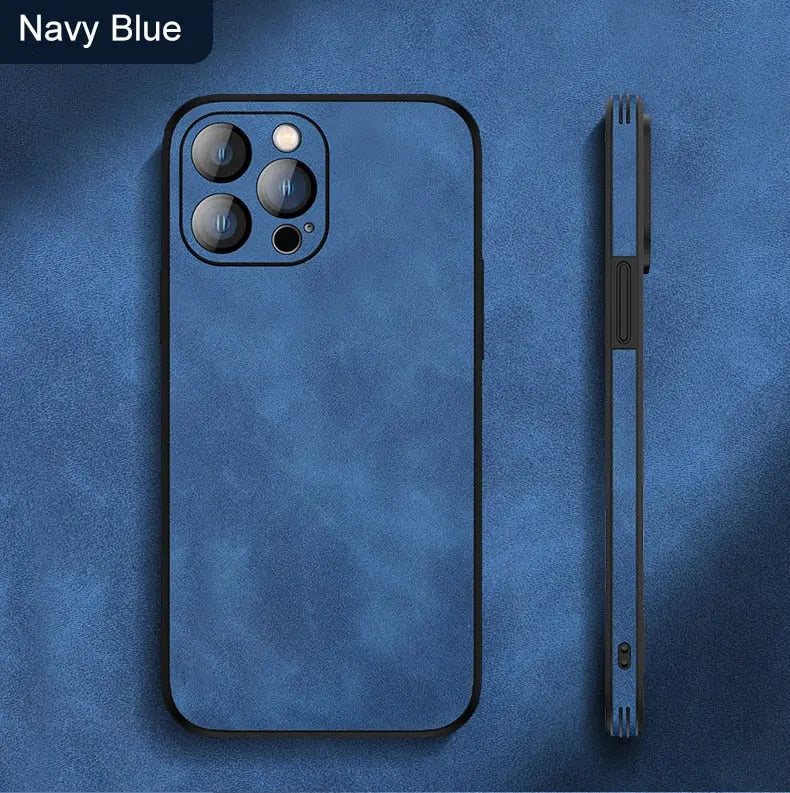 Soft Leather Case with Lens Film Protection for iPhone 14 13 12 series