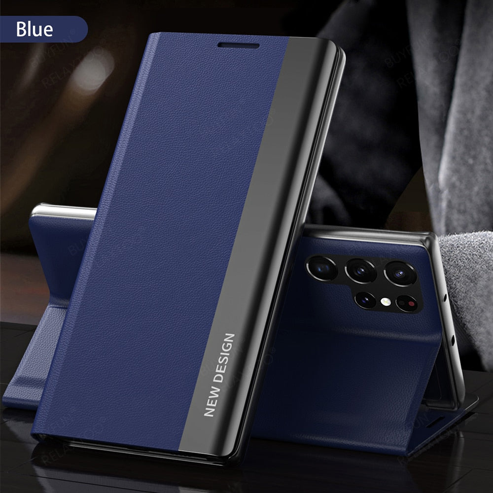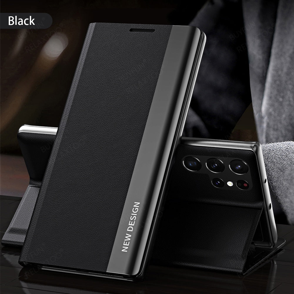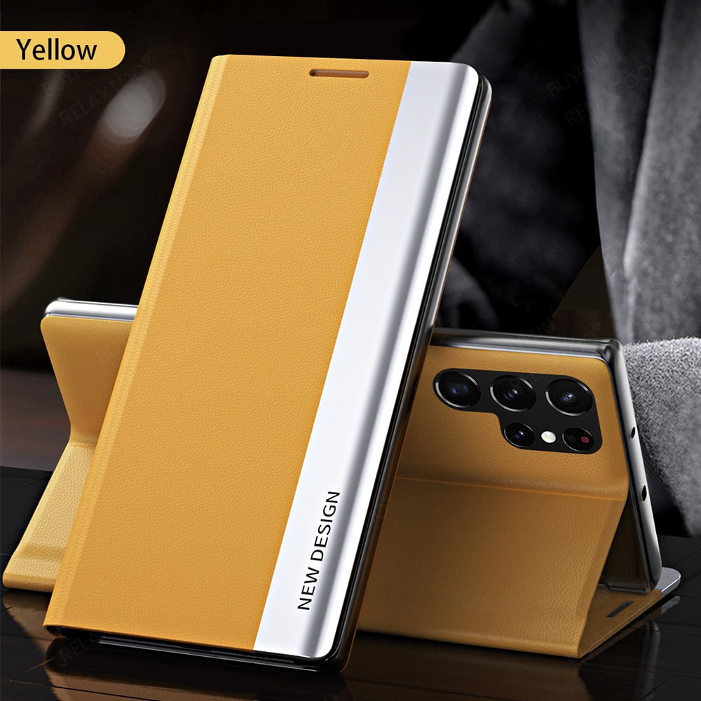 Luxury 6D Plating Leather Flip Magnetic Book Stand Cover For S23 Series