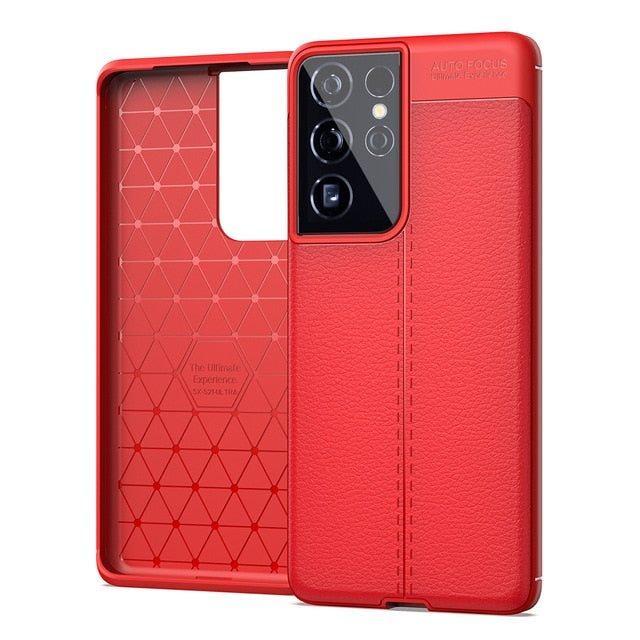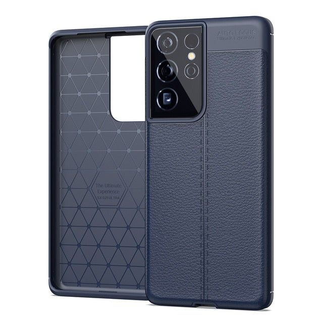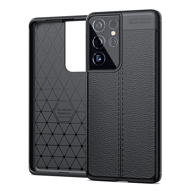 Shockproof Case Leather Texture Soft Silicone Phone Back Cover for Samsung S21 Series