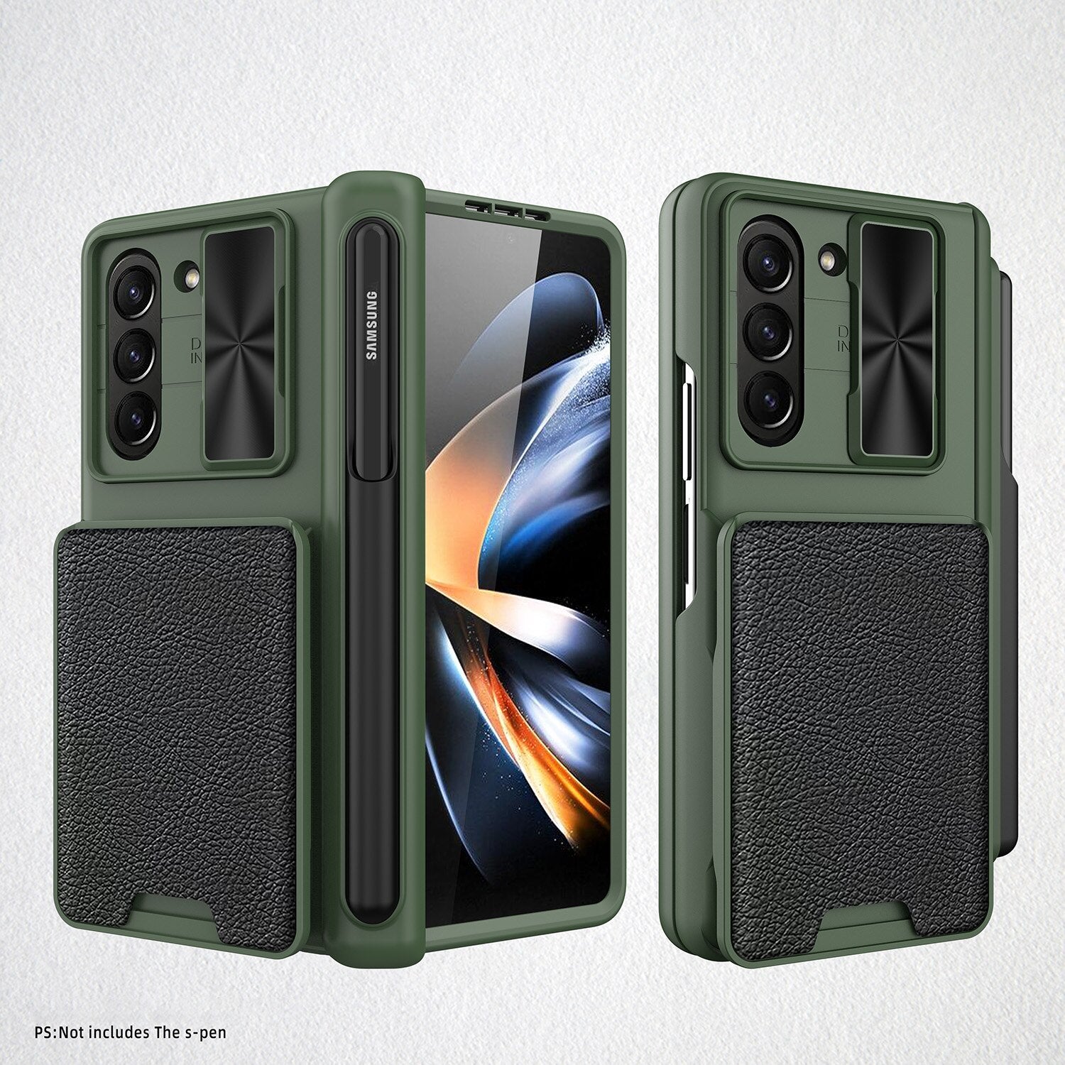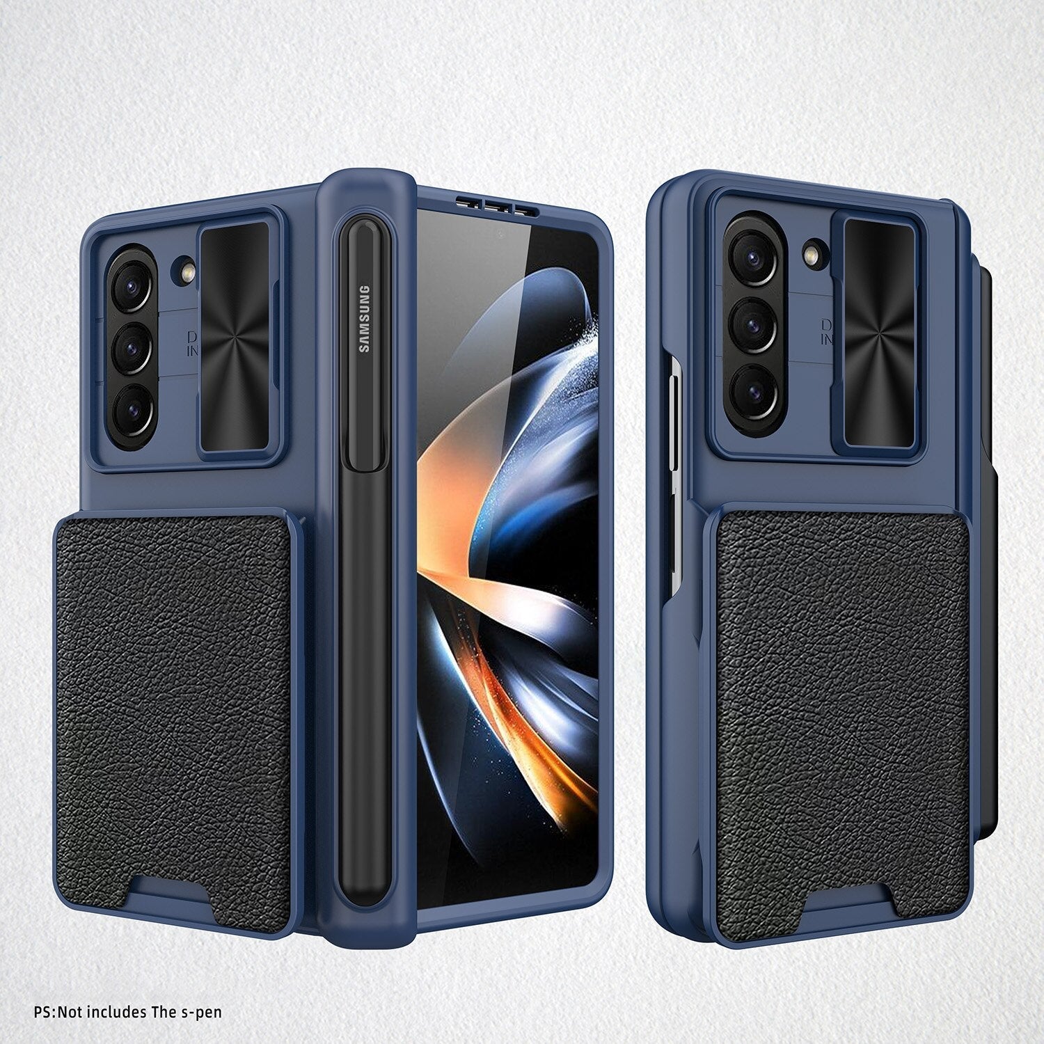For Samsung Galaxy Z Fold5 Fold 5 Case with S Pen Holder Hard Leather Wallet Card Bag Cover