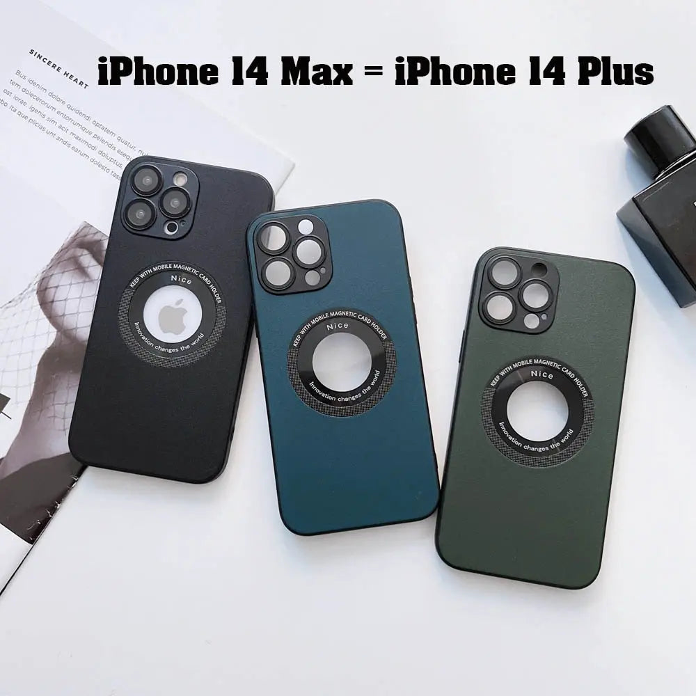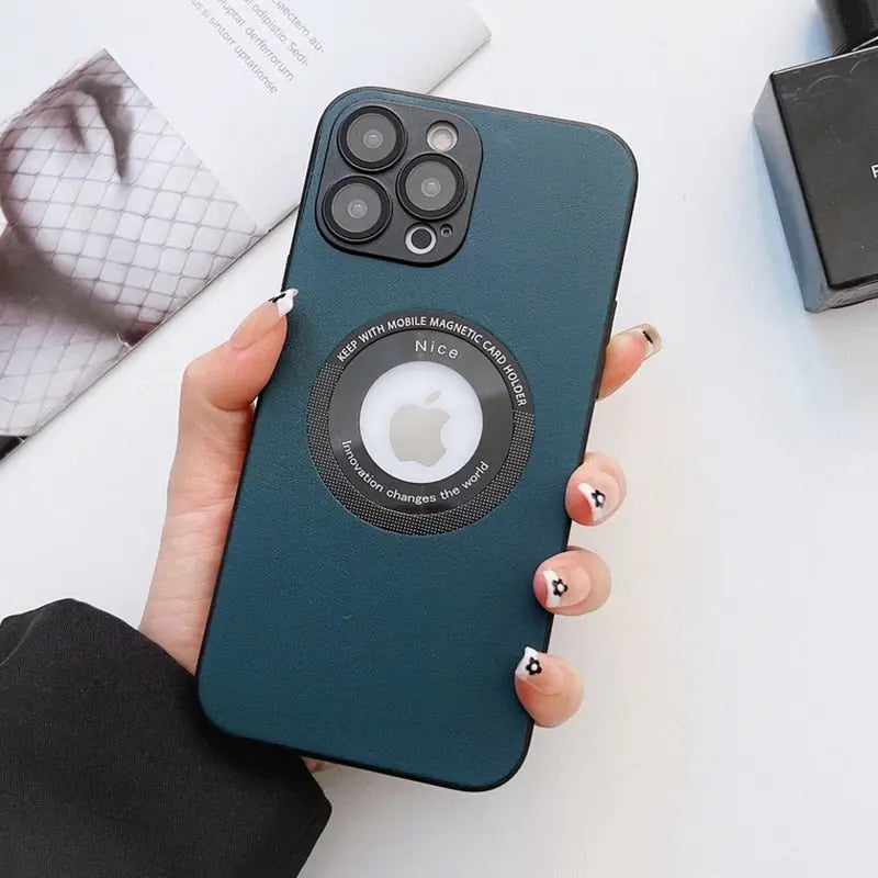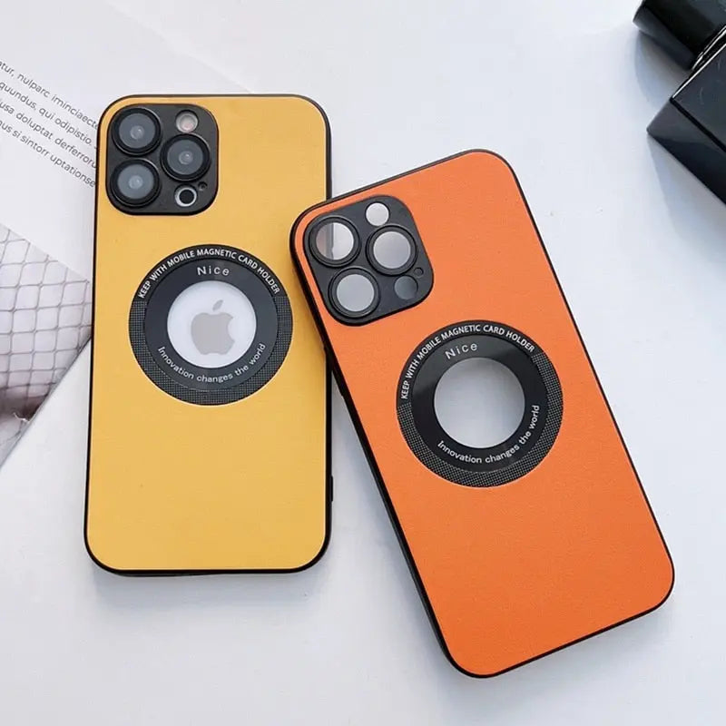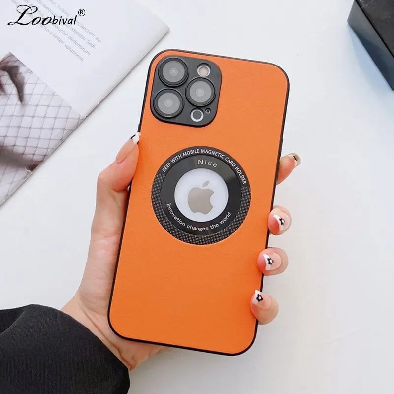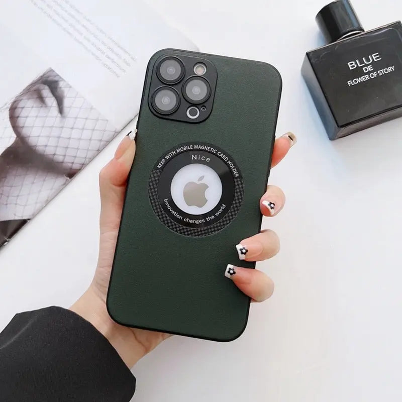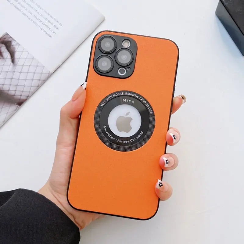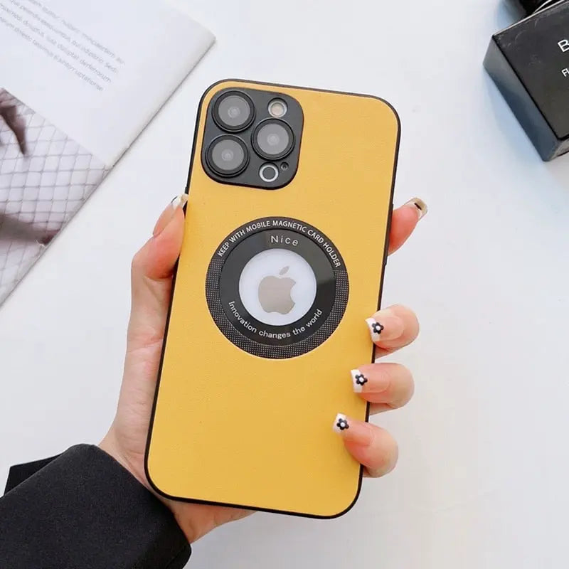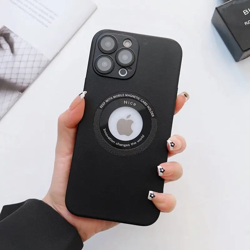 Luxury Leather Logo Hole Case for iPhone 14/13 /12 Glass Camera Film – THEROXYMOB