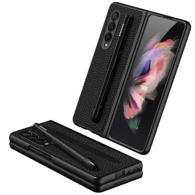 Luxury Leather With Pen Holder Ultra-thin Cover For Samsung Galaxy Z Fold 3 5G Case Camera Protection Coque Funda