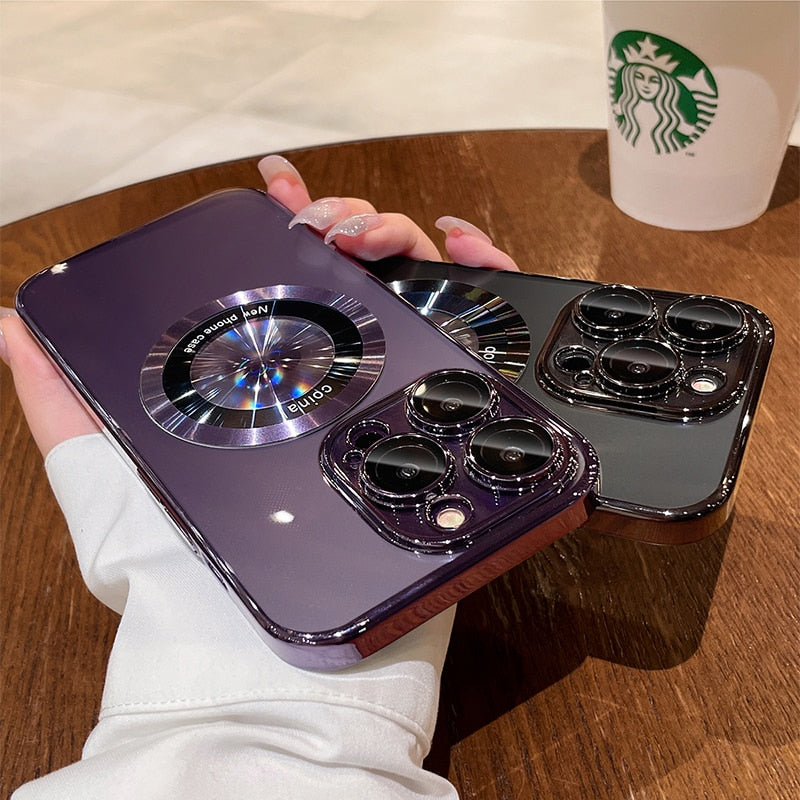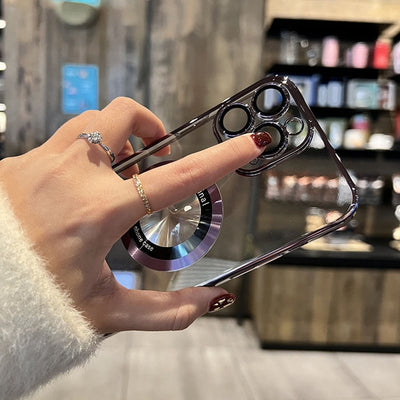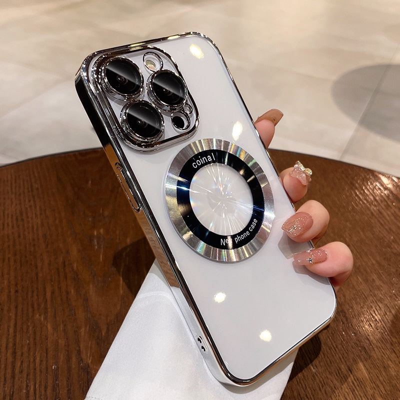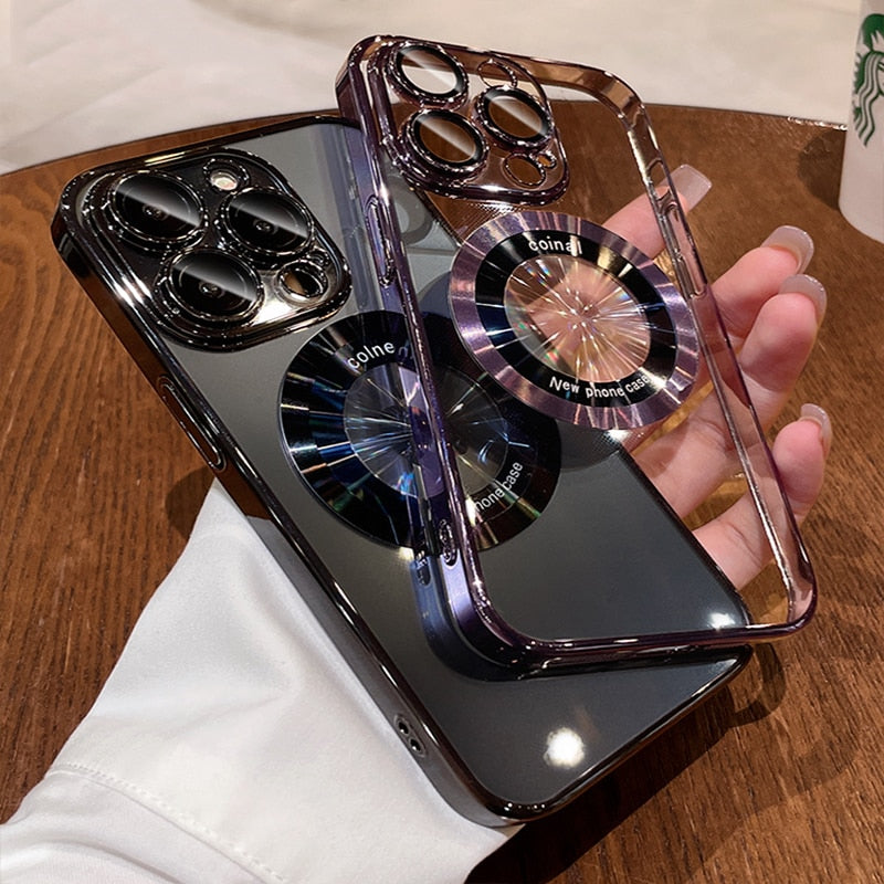 Magsafe Case Luxury Plating Transparent Magnetic Cover for iPhone 14 13 12