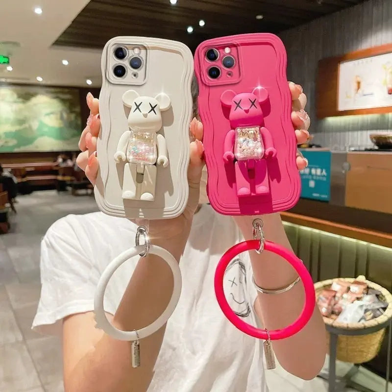 Silicone Bead Bear Holder Bracelet Strap Phone Case For iphone 14 13 – THEROXYMOB