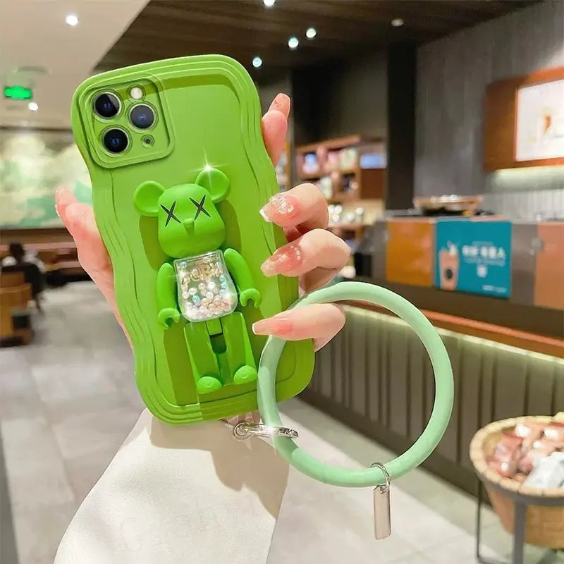 Silicone Bead Bear Holder Bracelet Strap Phone Case For iphone 14 13