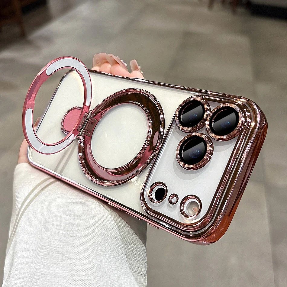 New In Phone Case- Four Corners Air Cushion Anti-fall Case with Invisible Ring Stand for iPhone 17/ 16 /15 /14
